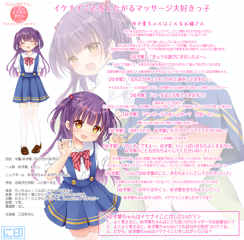 に印 にほん女子校生ずかんCute Rico先生描き下ろし イケナイことをしたがるマッサージ大好きっ子【中園 ゆず葉】抱き枕カバー & B2タペストリー